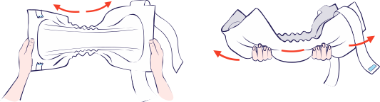 - Rozłóż produkt, chwyć go za dwa końce i lekko pociągnij a następnie złóż wzdłuż na pół.