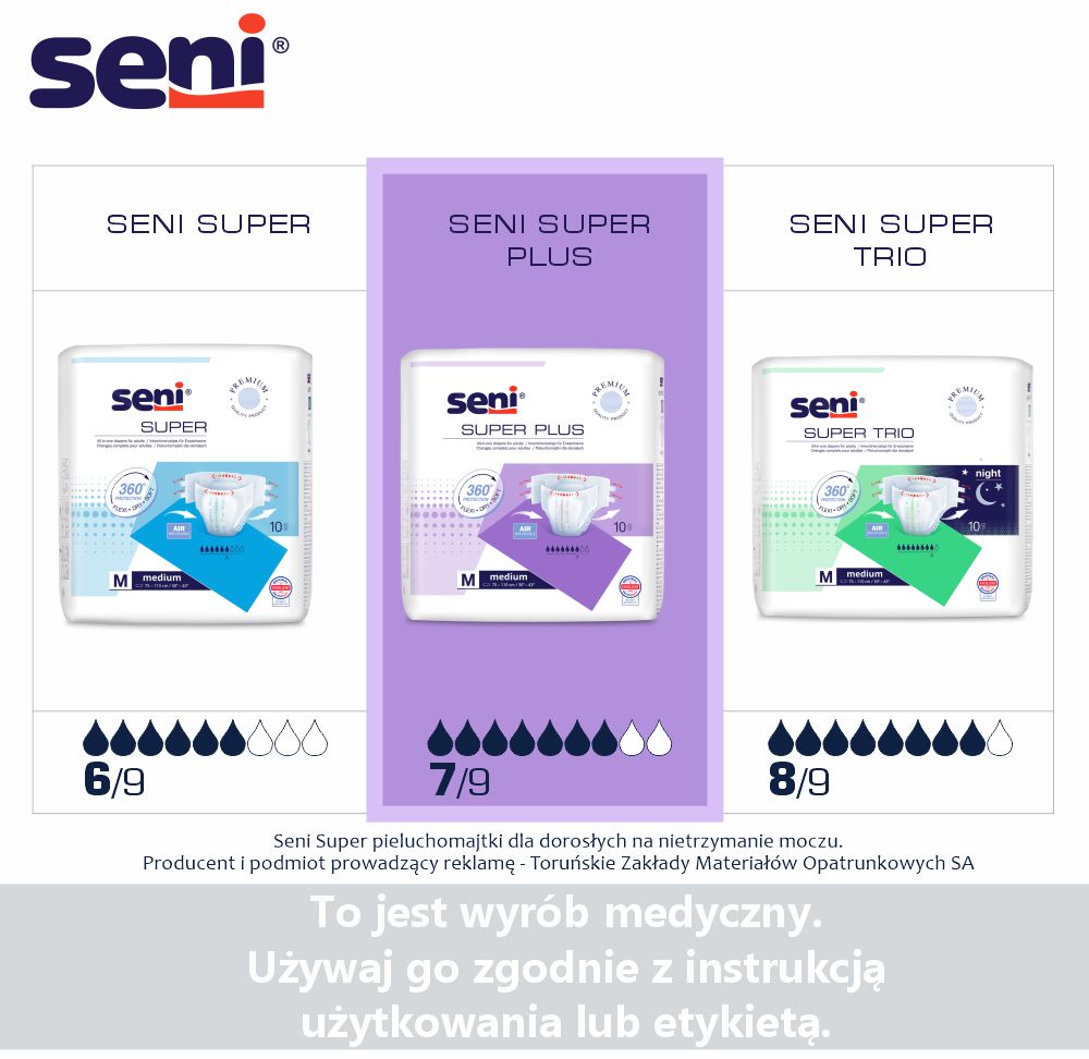 Oddychające pieluchomajtki Seni Super Plus dla osób z ciężkim nietrzymaniem moczu oraz inkontynencją kałową: